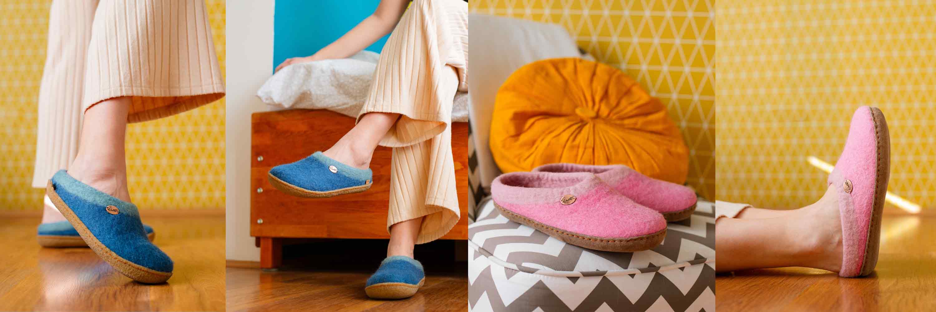 Zuhause ist, wo Deine WoolFits sind – gemütliche Filzpantoffeln aus 100 % Wolle.