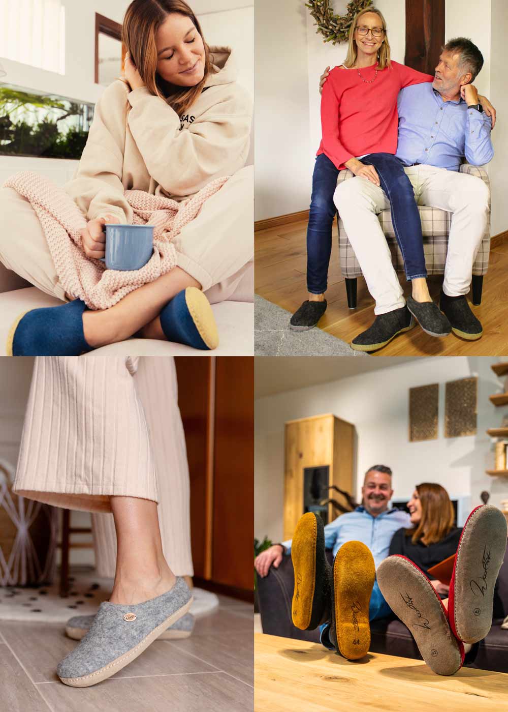 Gemütliche Filzpantoffeln aus 100 % Wolle – zuhause ist, wo Deine WoolFits sind.