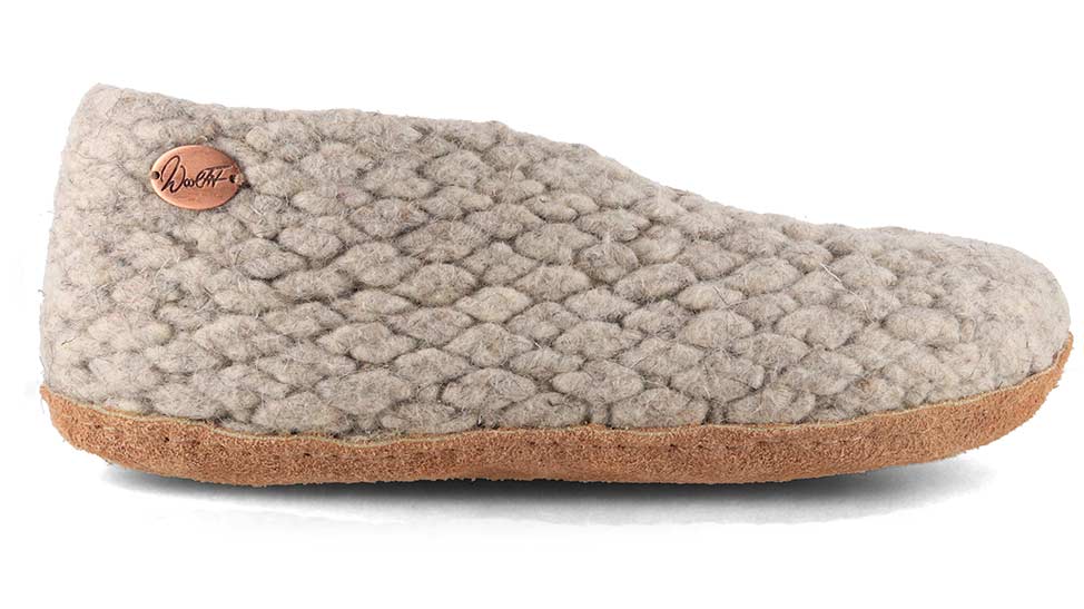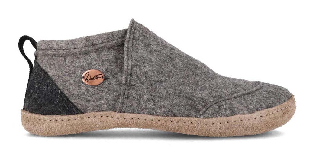 Natürliche Wolle ist ein wahrer Fußschmeichler. Unsere Hausschuhe verfügen fast alle über eine ziemlich dicke Filzsohle, die entweder im Hausschuh eingearbeitet ist oder als herausnehmbare Einlage im Hausschuh liegt. Dadurch ist der Auftritt besonders angenehm, flexibel und weich, vor allem wenn man sie mit starren herkömmlichen Hausschuhen, z.B. mit Korkfußbett vergleicht.