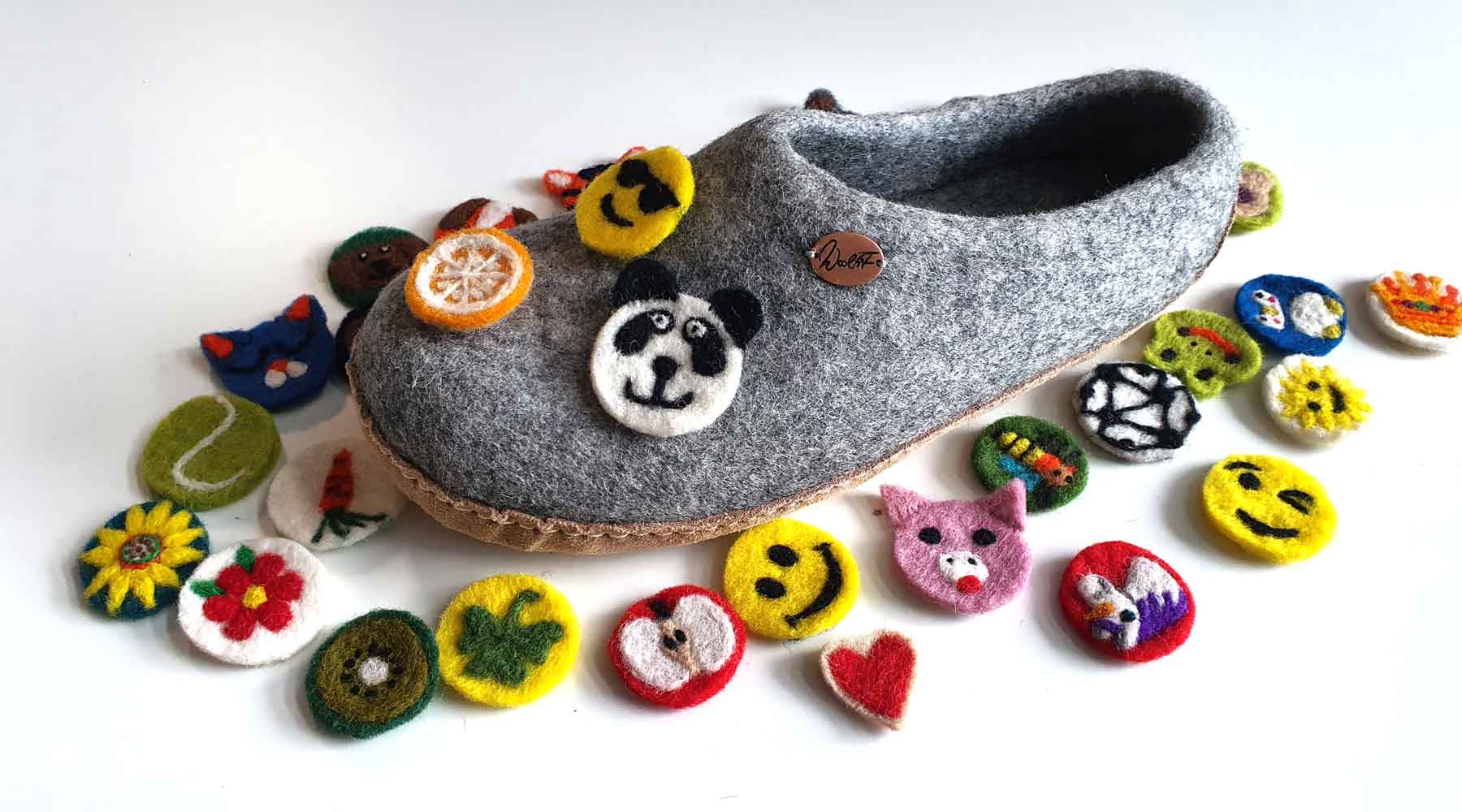 Mit den WoolFit Filzstickern kannst Du Deine Hausschuhe kinderleicht individuell gestalten. Die Sticker machen gute Laune und jedes Geschenk zu etwas Besonderem!