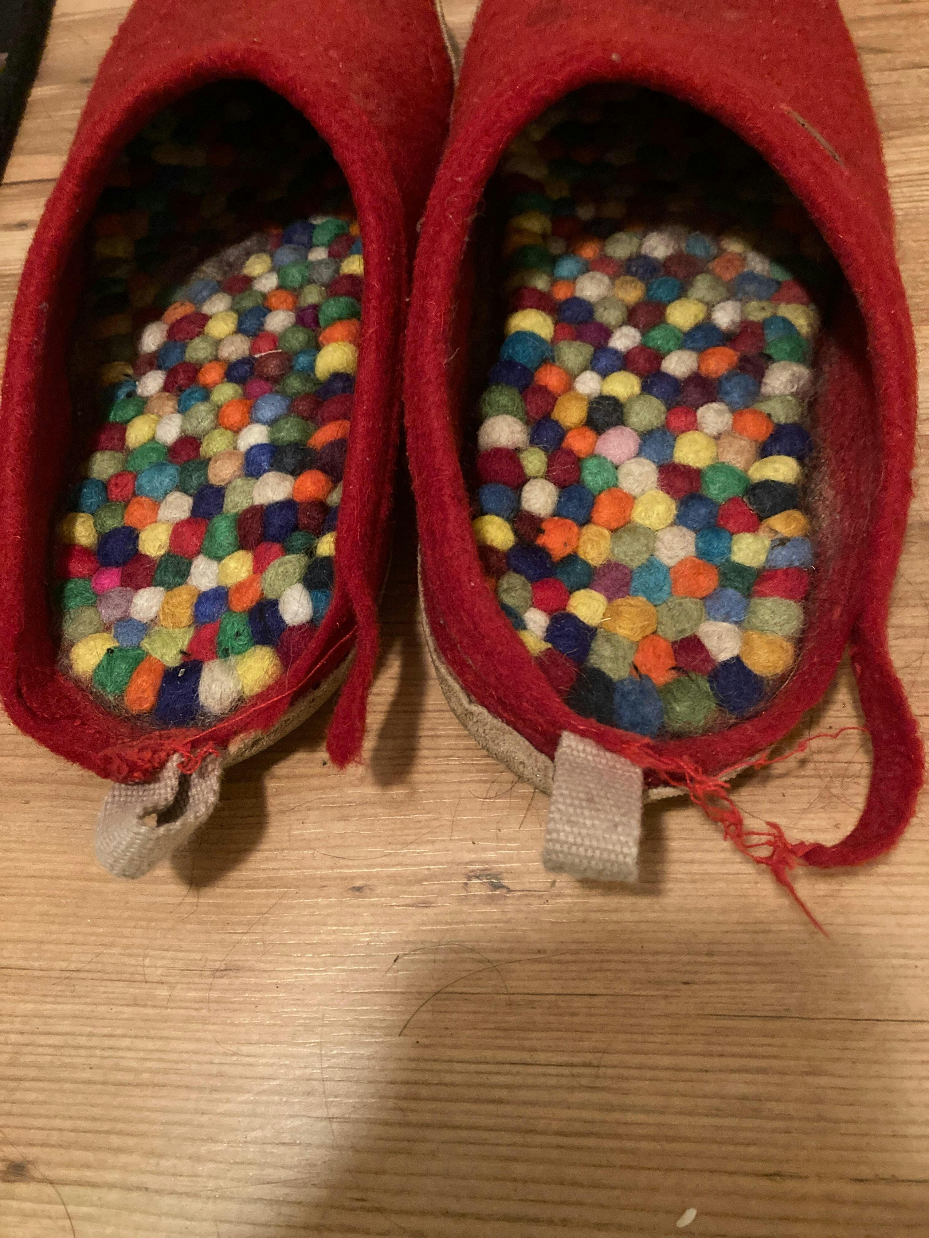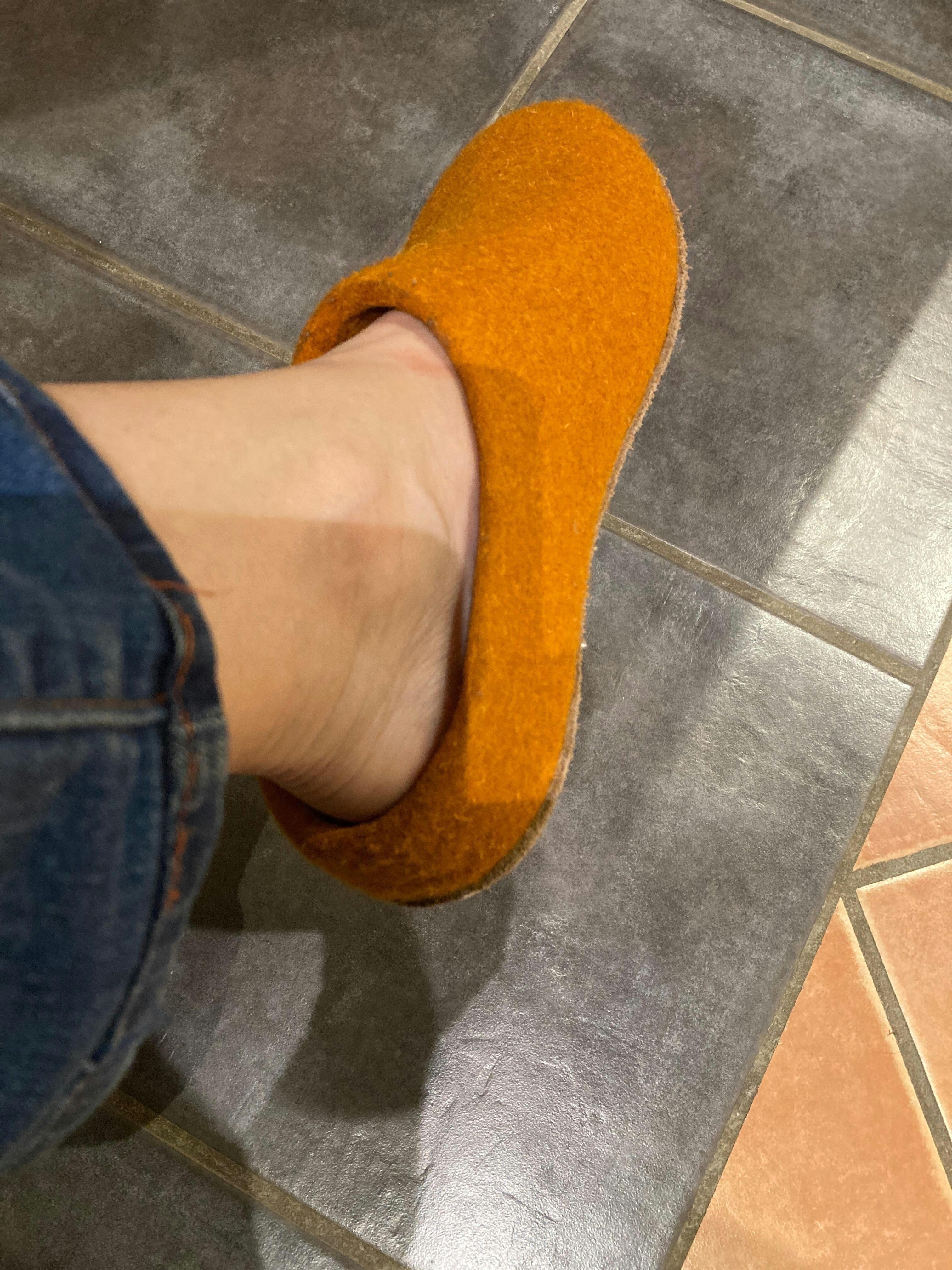 - Vorbereitung: Zuerst die Pantoffeln ausklopfen und den Schmutz abbürsten, z.B. mit unserer Filzbürste.