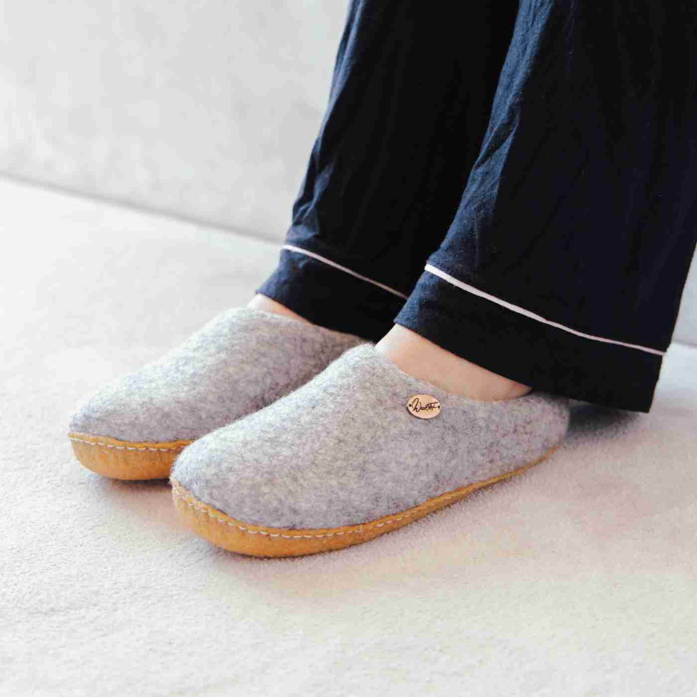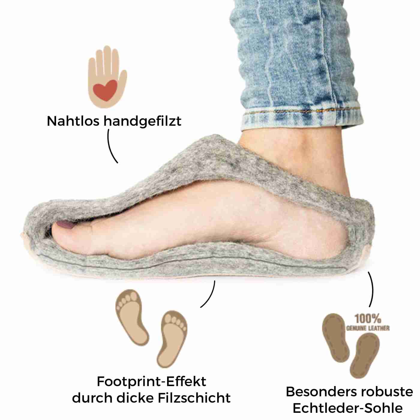 Unser Kundenliebling - Der handgefilzte Barfuß-Hausschuh mit Footprint Fußbett