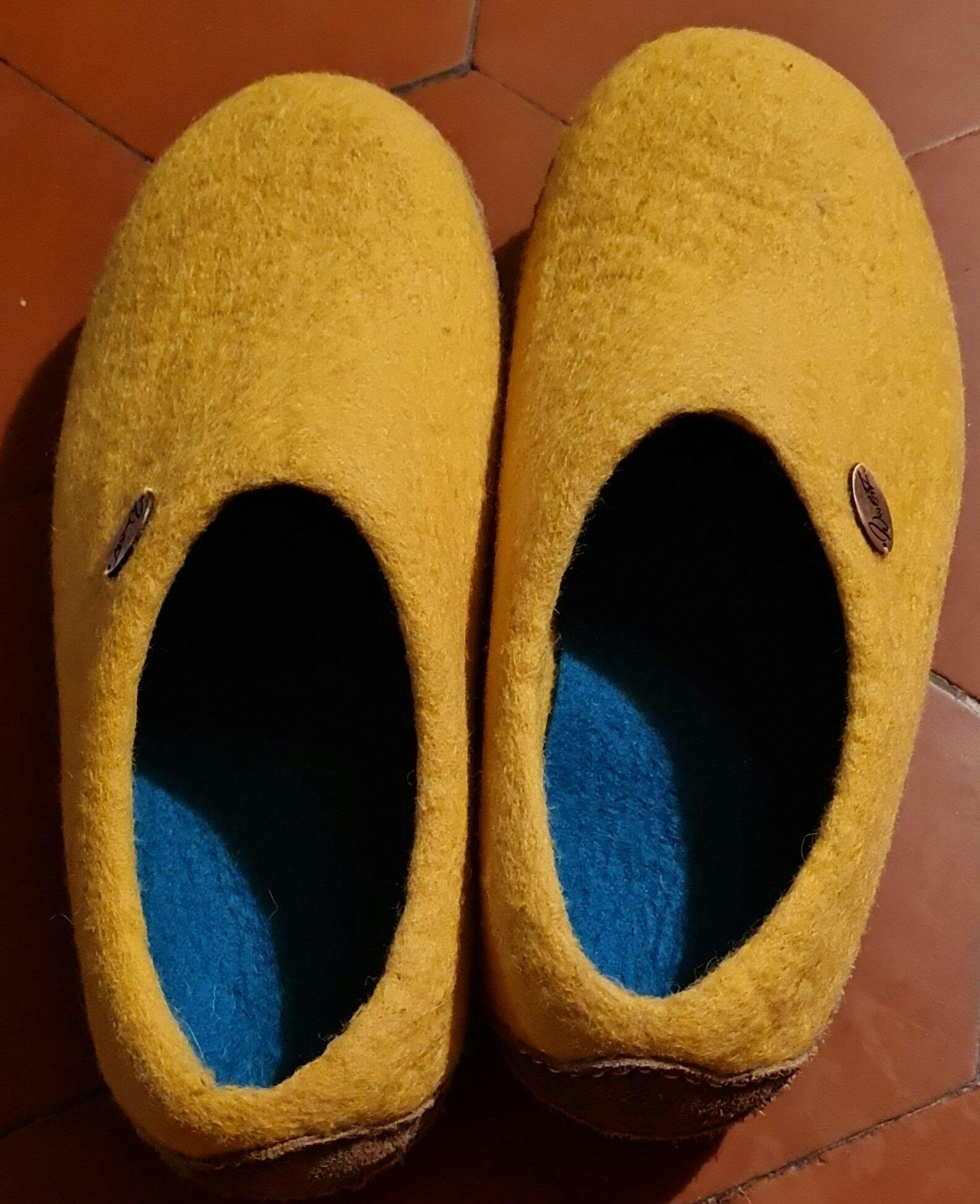 - Vorbereitung: Zuerst die Pantoffeln ausklopfen und den Schmutz abbürsten, z.B. mit unserer Filzbürste.