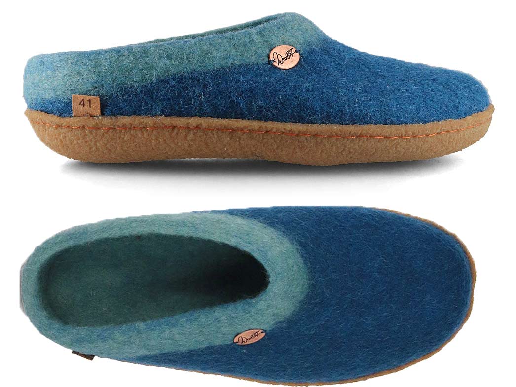 Sherpa Filzpantoffeln mit Fußbett & Naturgummisohle, blau