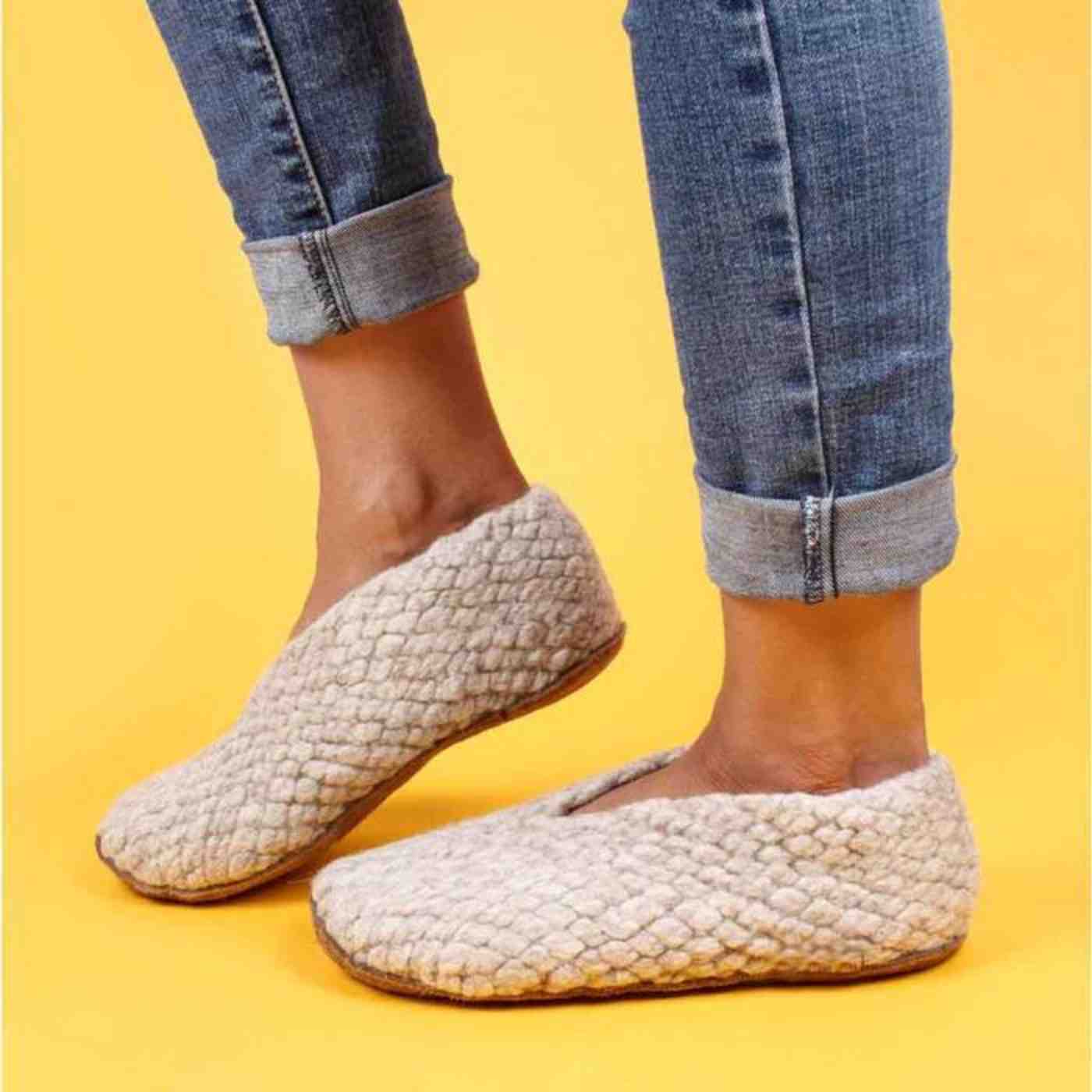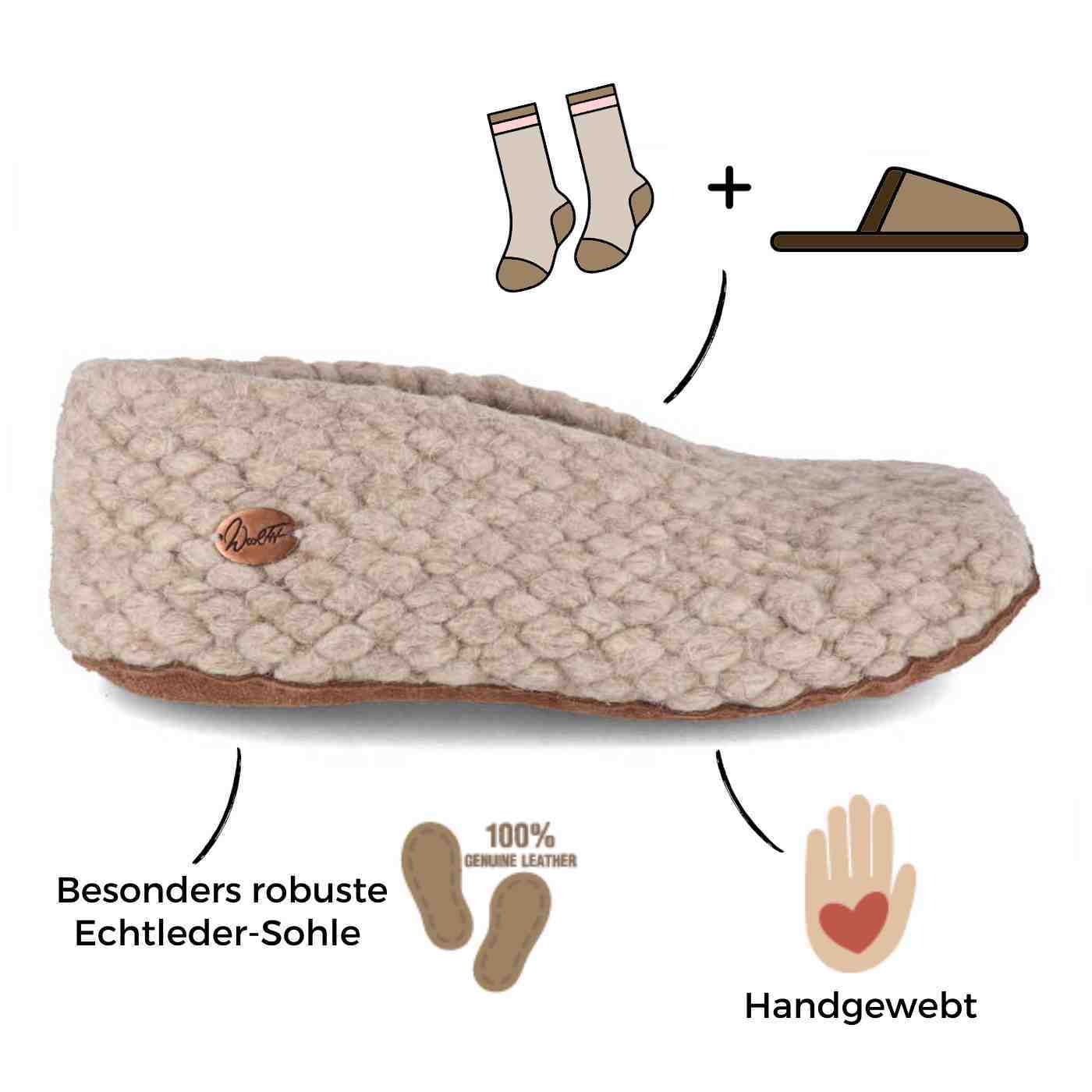 Woolies handgewebte Hausschuhe, beige
