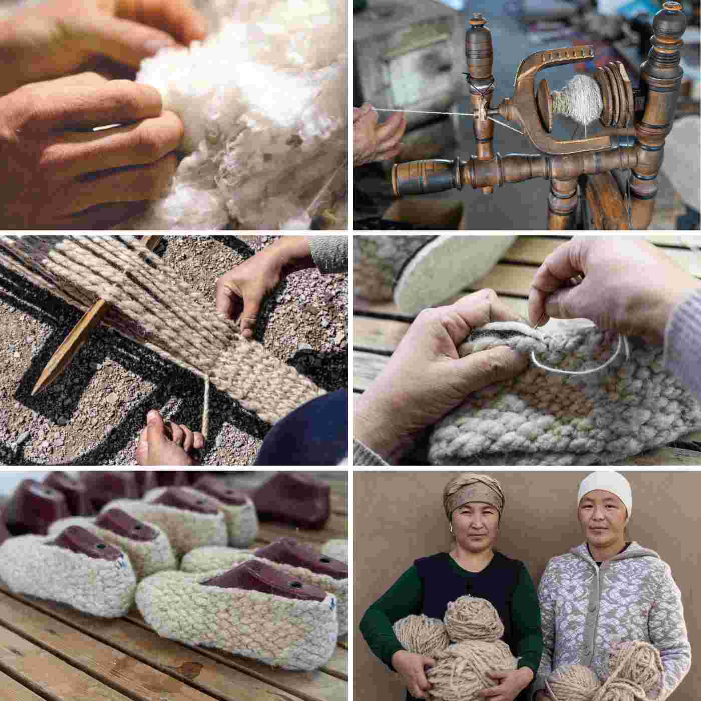 Unsere geschickten kirgisischen Kunsthandwerkerinnen haben jedoch diese Technik perfektioniert, um diese einzigartigen handgewebten Hausschuhe herzustellen. Wir mussten kürzlich die Preise für die Woolies etwas erhöhen, da der Aufwand für das traditionelle Weben extrem hoch ist. Die Preiserhöhung geht zu 100% (minus Mehrwertsteuer) an die Weberinnen. Schaut Euch dazu gerne mal das Woolies Herstellung Video an.